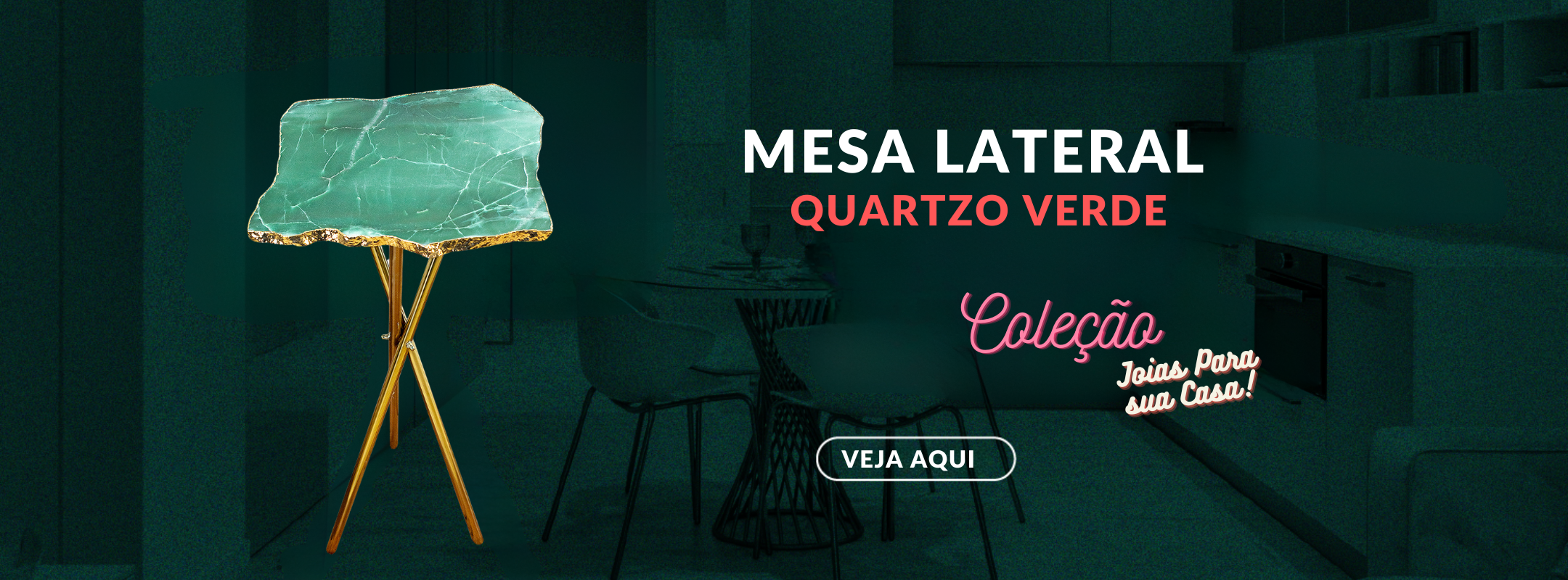 Mesa Lateral de QUARTZO VERDE Sem Banho | Base Tripé Latão Ouro | Altura de 60 cm - Peça Artesanal BR Crystals