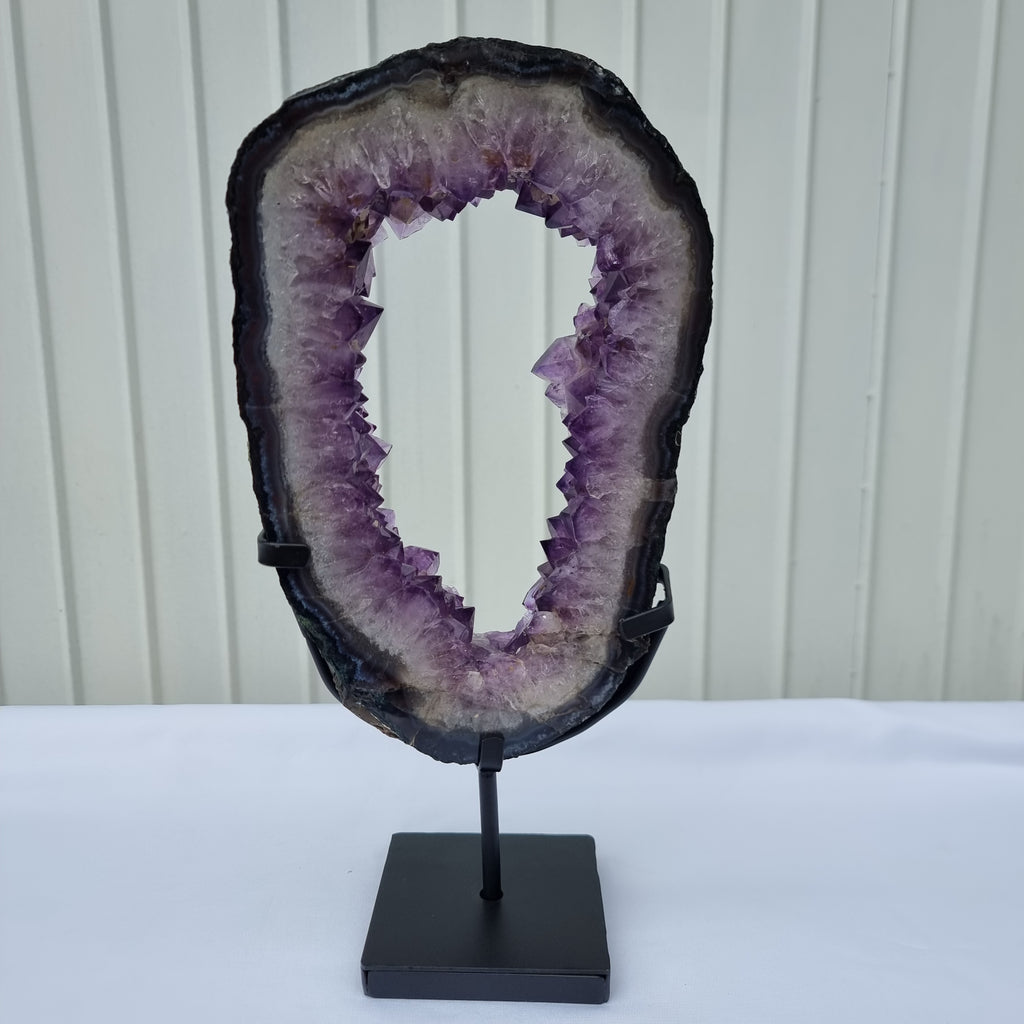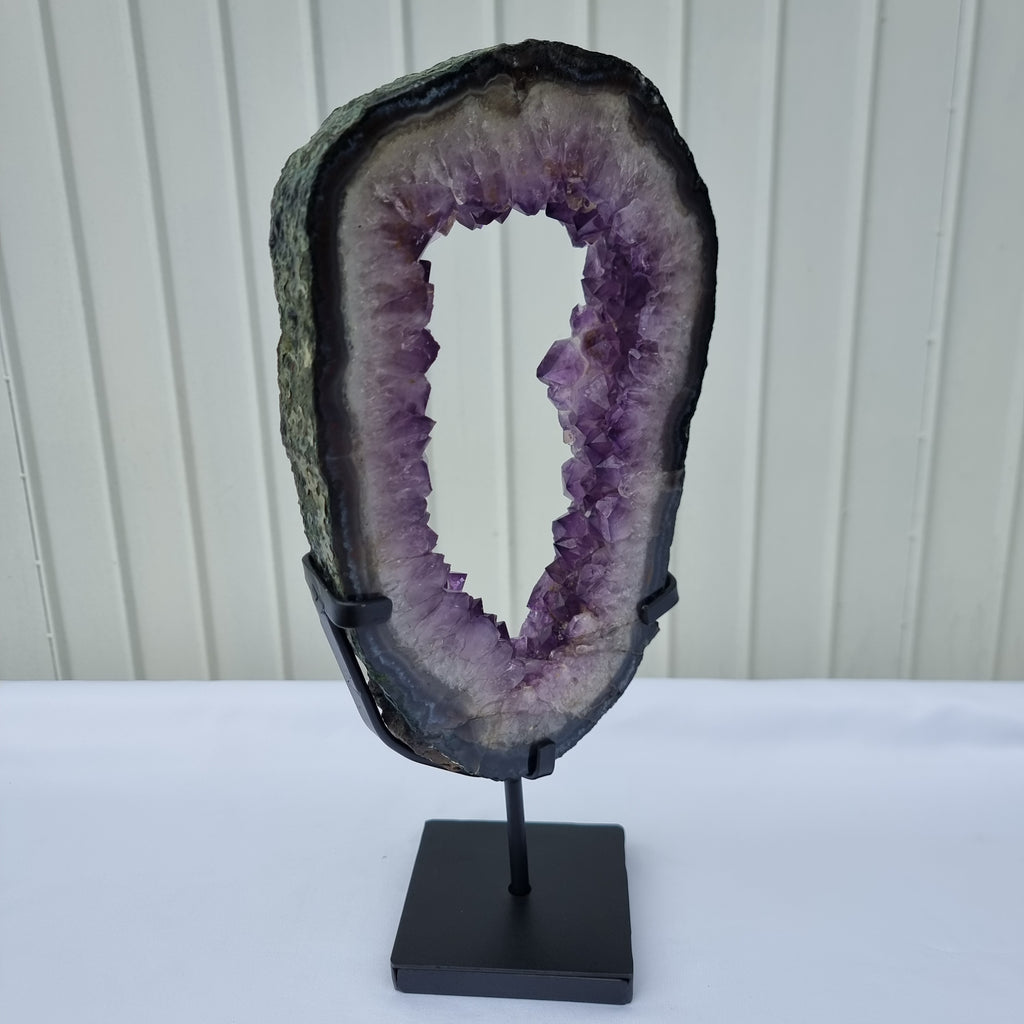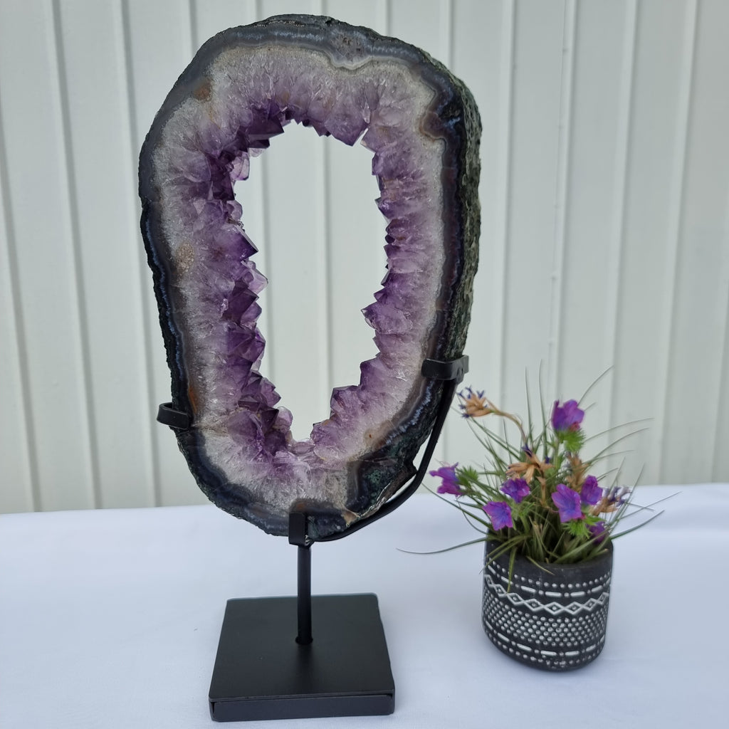 Argola de Ametista com Cristais Roxos | Base de ferro Preta | Peso 3,00 kgs, Altura 35 cm | Energia, Beleza e Sofisticação
