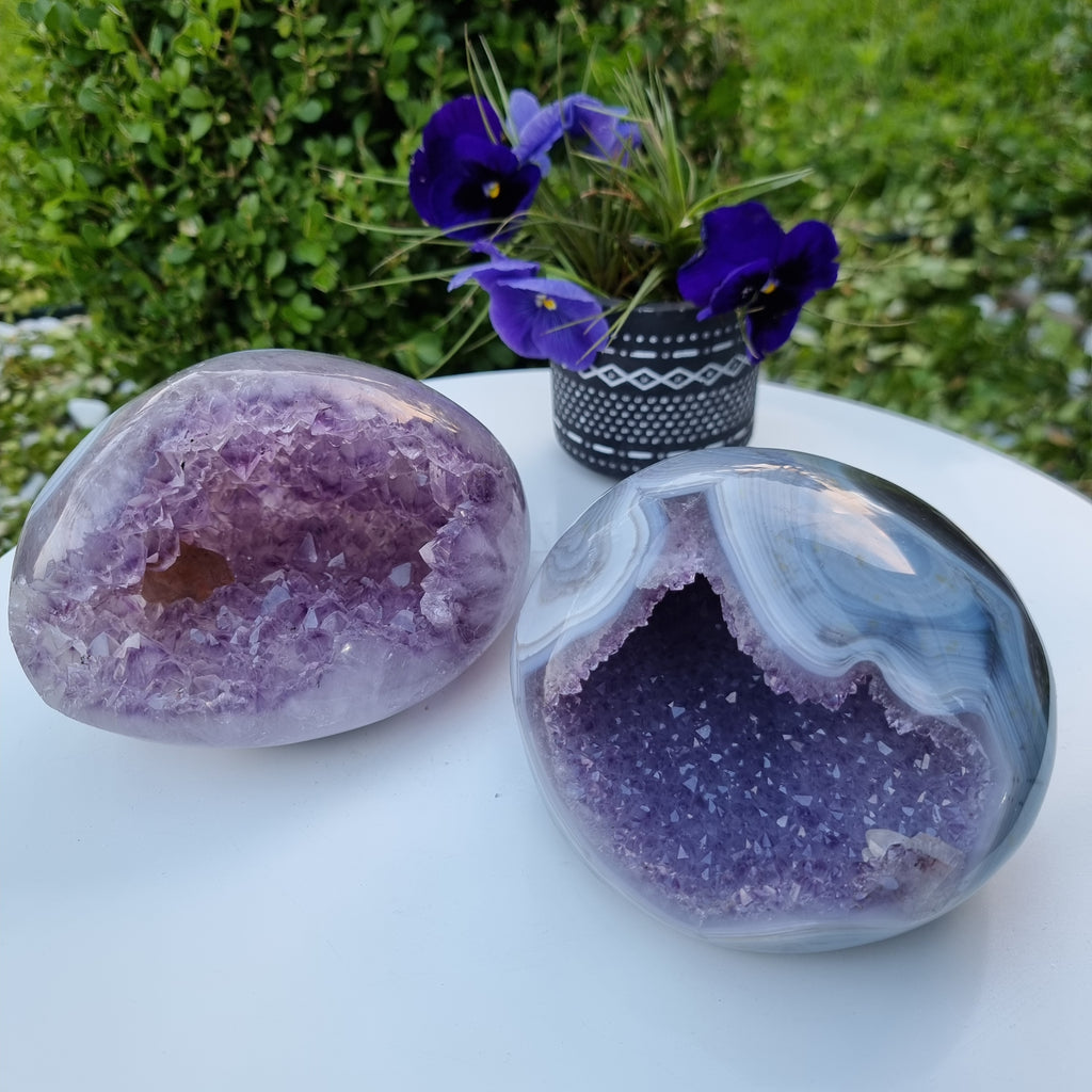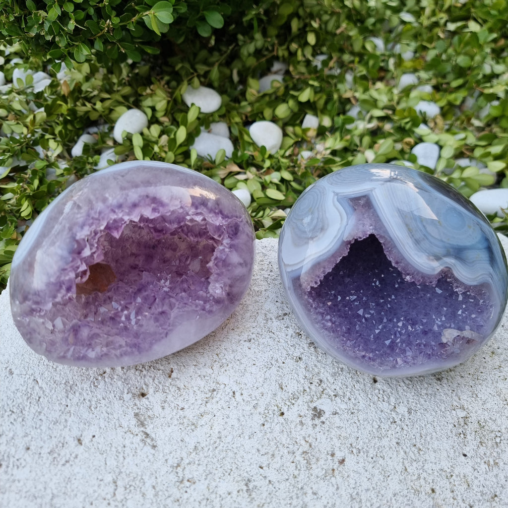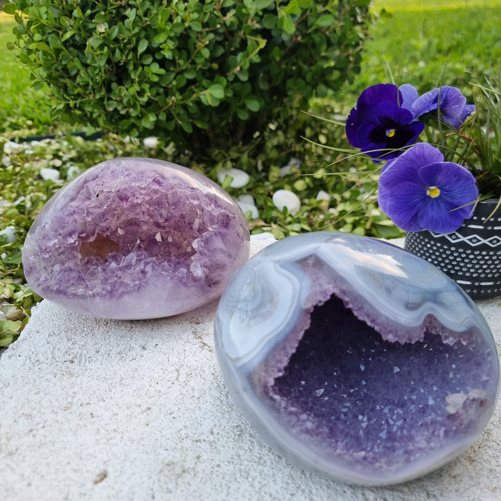 A ametista é uma das pedras mais admiradas do mundo, símbolo de proteção espiritual, equilíbrio e clareza mental. Com seu tom roxo vibrante, ela está associada à sabedoria, paz interior e transmutação energética. Usada desde a antiguidade por reis, sacerdotes e curandeiros, era considerada um amuleto contra más energias e vícios. Acredita-se que a ametista acalme a mente, reduza a ansiedade e melhore o foco, sendo ideal para meditação e ambientes de trabalho. É uma pedra ligada ao chakra coronário, favorecendo a conexão com o espiritual e a intuição. Também ajuda na limpeza energética de ambientes, afastando vibrações negativas e promovendo bem-estar. Além disso, a ametista estimula a autoconsciência e o crescimento pessoal, fortalecendo a tomada de decisões com clareza e serenidade. Seu uso em casa ou no escritório eleva a vibração do espaço e traz uma sensação constante de harmonia. Naturalmente bela e com alto valor simbólico, a ametista é perfeita tanto para joias quanto para peças decorativas com propósito energético.