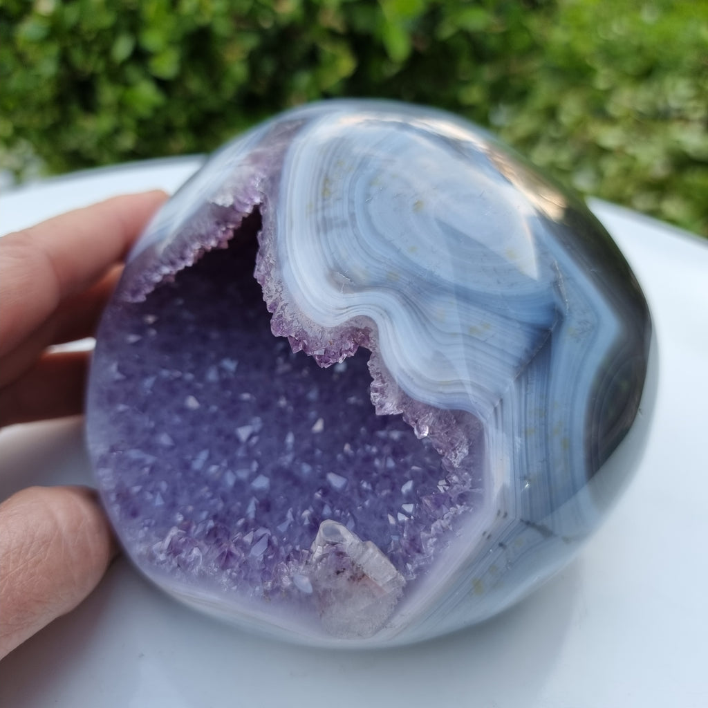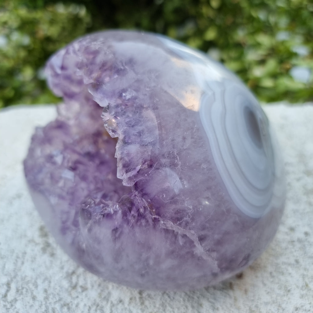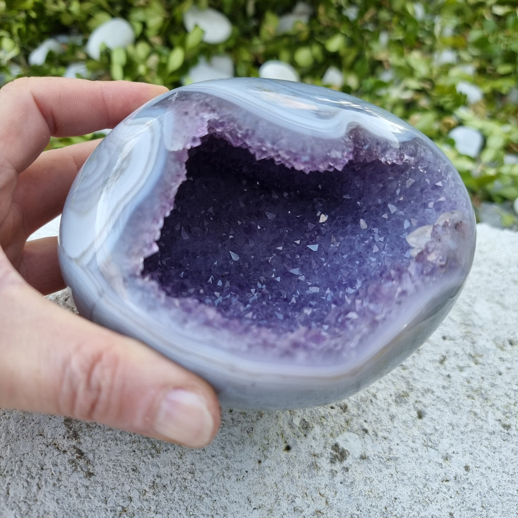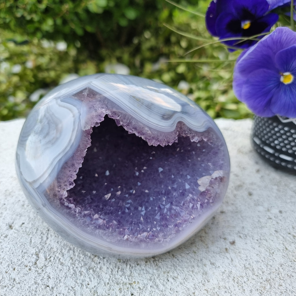 A ametista é uma das pedras mais admiradas do mundo, símbolo de proteção espiritual, equilíbrio e clareza mental. Com seu tom roxo vibrante, ela está associada à sabedoria, paz interior e transmutação energética. Usada desde a antiguidade por reis, sacerdotes e curandeiros, era considerada um amuleto contra más energias e vícios. Acredita-se que a ametista acalme a mente, reduza a ansiedade e melhore o foco, sendo ideal para meditação e ambientes de trabalho. É uma pedra ligada ao chakra coronário, favorecendo a conexão com o espiritual e a intuição. Também ajuda na limpeza energética de ambientes, afastando vibrações negativas e promovendo bem-estar. Além disso, a ametista estimula a autoconsciência e o crescimento pessoal, fortalecendo a tomada de decisões com clareza e serenidade. Seu uso em casa ou no escritório eleva a vibração do espaço e traz uma sensação constante de harmonia. Naturalmente bela e com alto valor simbólico, a ametista é perfeita tanto para joias quanto para peças decorativas com propósito energético.