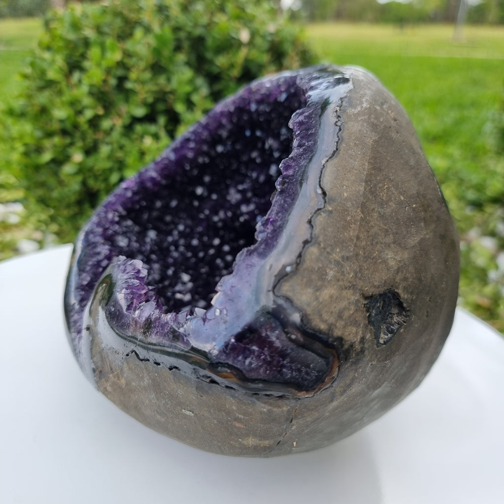 Descubra o poder da natureza com este magnífico Ametista super ROXA Especial (Colecionador) cuidadosamente selecionada pela equipe da BR Crystal. Mais que uma peça decorativa, a ametista é conhecida por suas propriedades energéticas, transmitindo paz, equilíbrio, proteção espiritual e uma beleza atemporal.