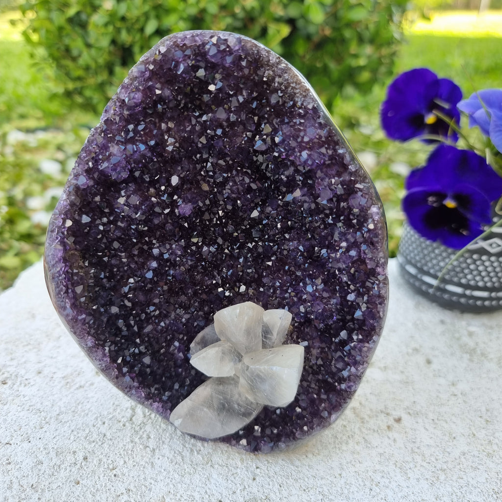 A ametista é uma das pedras mais admiradas do mundo, símbolo de proteção espiritual, equilíbrio e clareza mental. Com seu tom roxo vibrante, ela está associada à sabedoria, paz interior e transmutação energética. Usada desde a antiguidade por reis, sacerdotes e curandeiros, era considerada um amuleto contra más energias e vícios. Acredita-se que a ametista acalme a mente, reduza a ansiedade e melhore o foco, sendo ideal para meditação e ambientes de trabalho. É uma pedra ligada ao chakra coronário, favorecendo a conexão com o espiritual e a intuição. Também ajuda na limpeza energética de ambientes, afastando vibrações negativas e promovendo bem-estar. Além disso, a ametista estimula a autoconsciência e o crescimento pessoal, fortalecendo a tomada de decisões com clareza e serenidade. Seu uso em casa ou no escritório eleva a vibração do espaço e traz uma sensação constante de harmonia. Naturalmente bela e com alto valor simbólico, a ametista é perfeita tanto para joias quanto para peças decorativas com propósito energético.