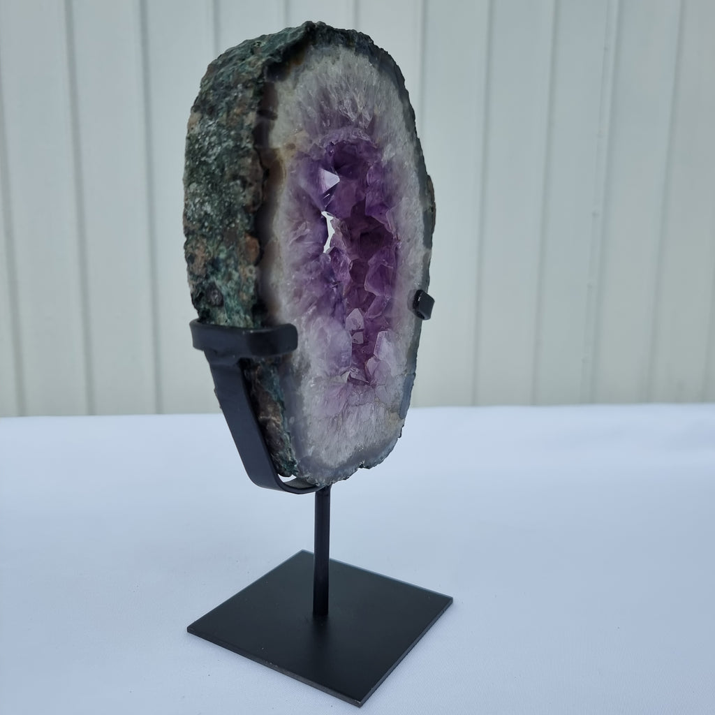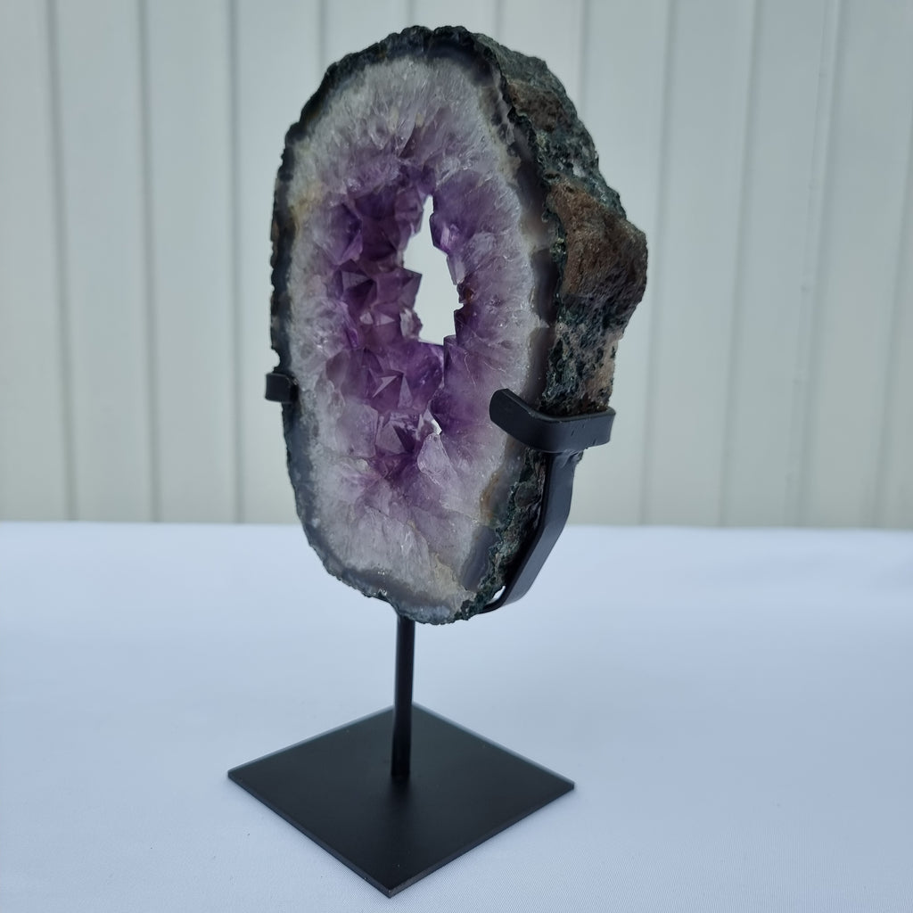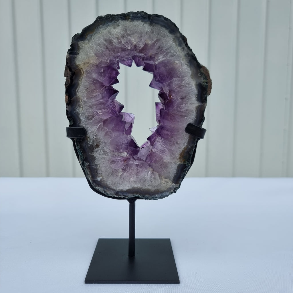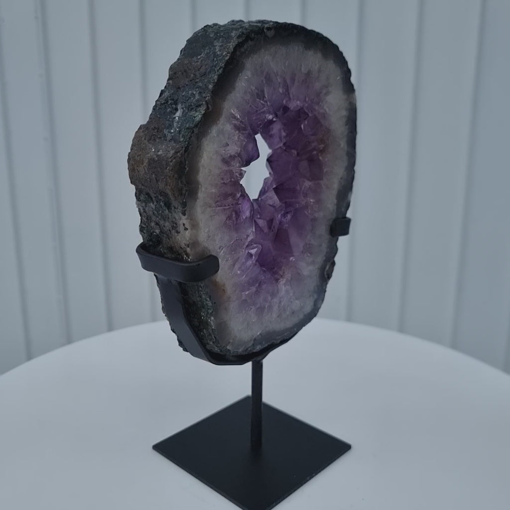 Argola de Ametista com Cristais Roxos | Base de ferro Preta | Peso 1,30 kgs, Altura 23 cm | Energia, Beleza e Sofisticação
