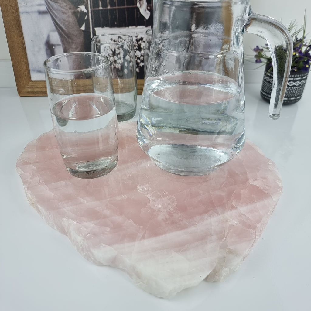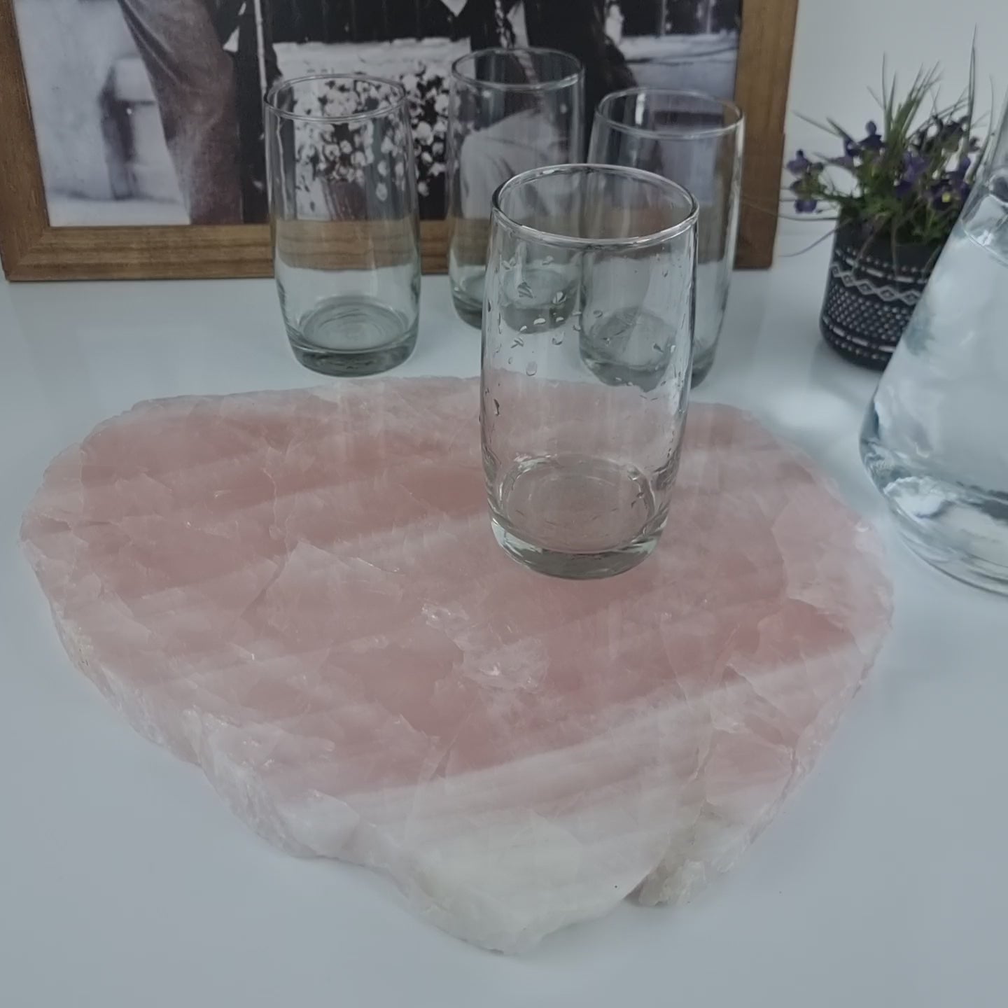 Bandeja de QUARTZO ROSA Bordas Naturais | 1 Unidade | Tamanho 30 cm | Peça Artesanal BR Crystals