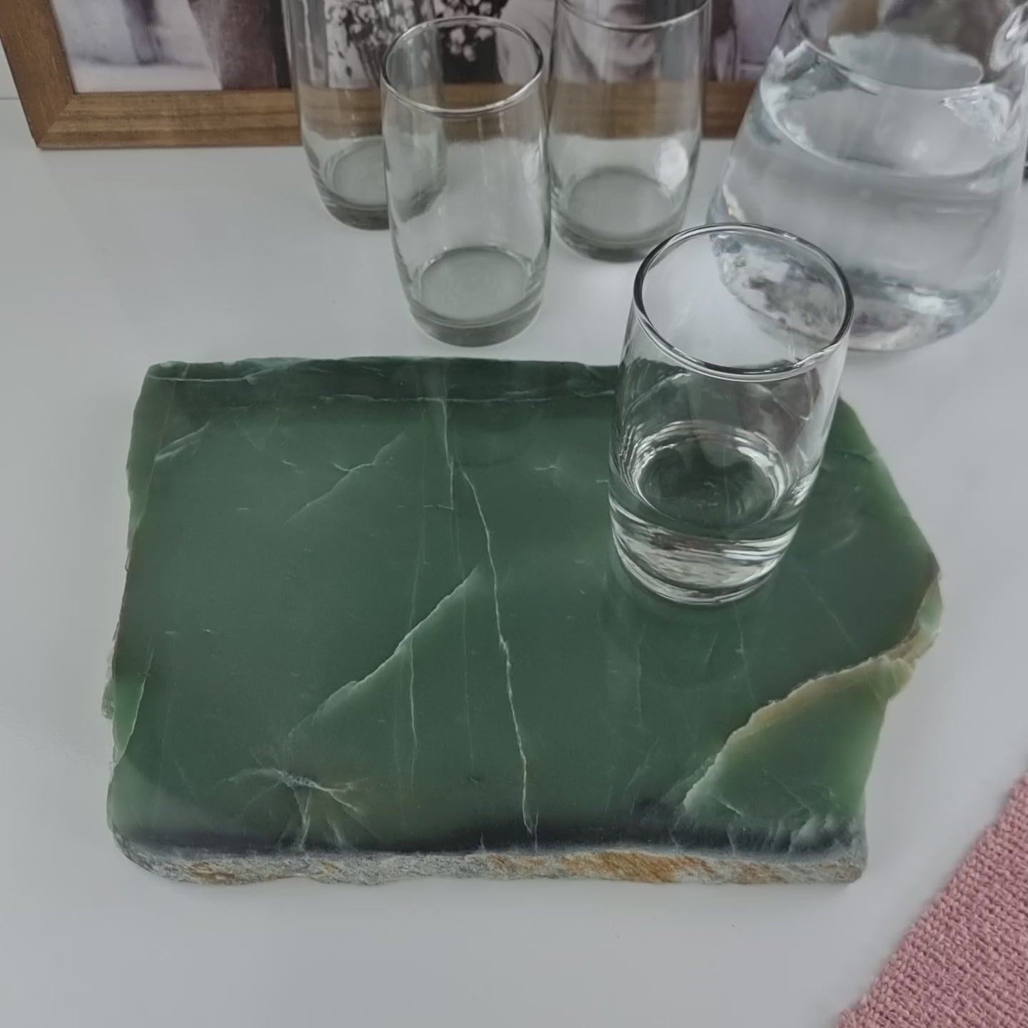 Bandeja de QUARTZO VERDE Bordas Naturais | 1 Unidade | Tamanho 30 cm | Peça Artesanal BR Crystals