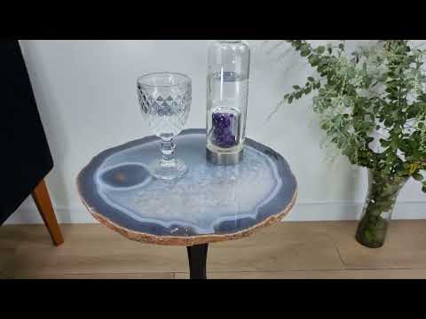Mesa Lateral de Àgatas Chapas GROSSAS| Base Tripé de Ferro Preta | Altura de 60 cm - Peça Artesanal BR Crystals