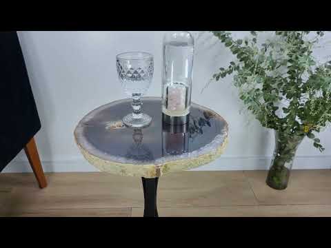 Mesa Lateral de Àgatas Naturais Chapas GROSSAS| Base Tripé de Ferro Preta | Altura de 60 cm - Peça Artesanal BR Crystals