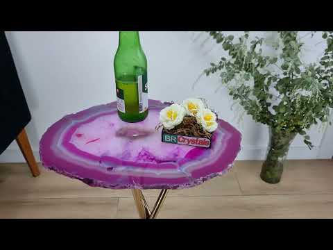 Mesa Lateral de Àgatas PINK FINAS| Base Tripé Latão Ouro | Altura de 60 cm - Peça Artesanal BR Crystals